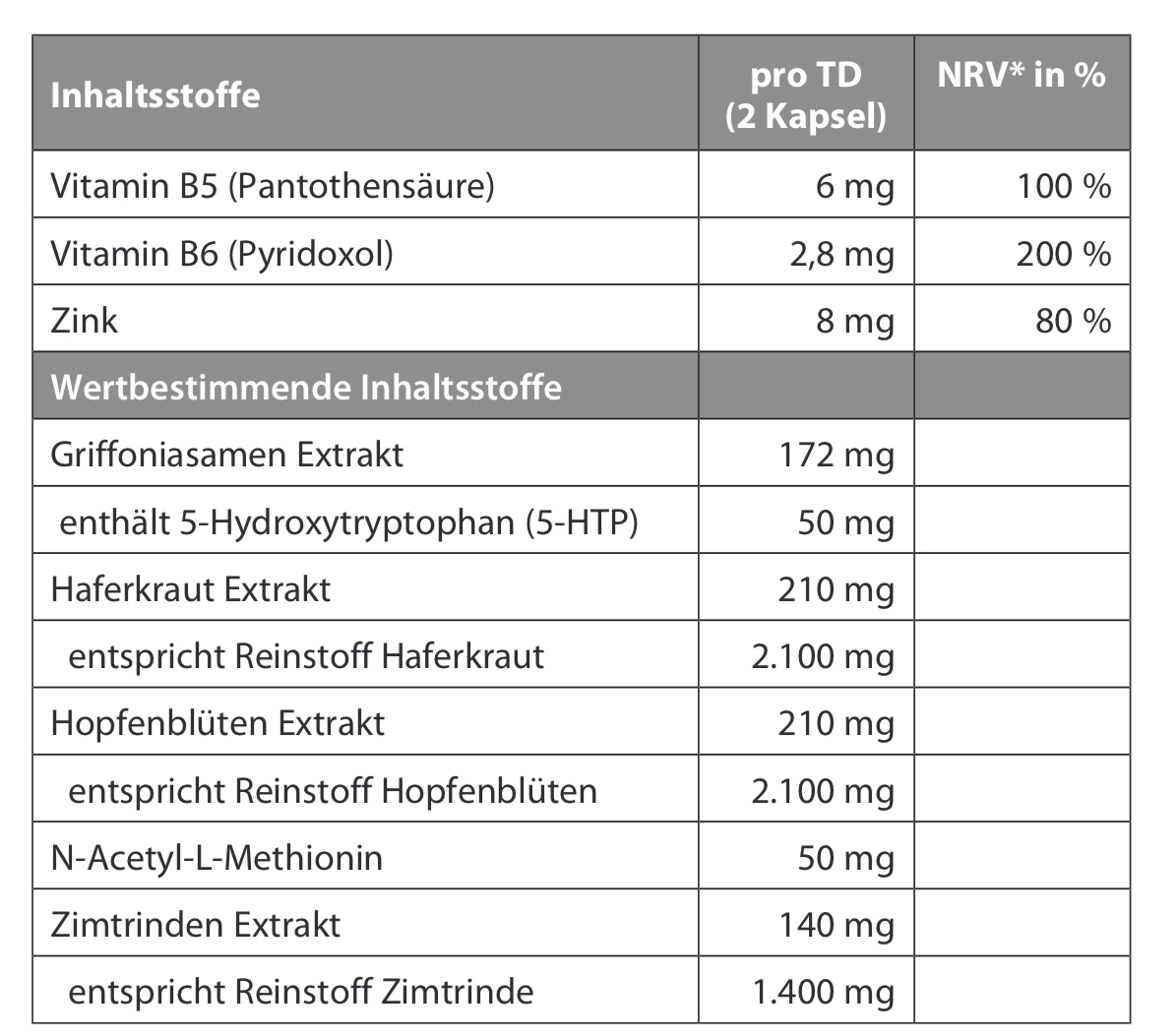Pflanzenextrakte: Hopfen, Haferkraut, Zimt