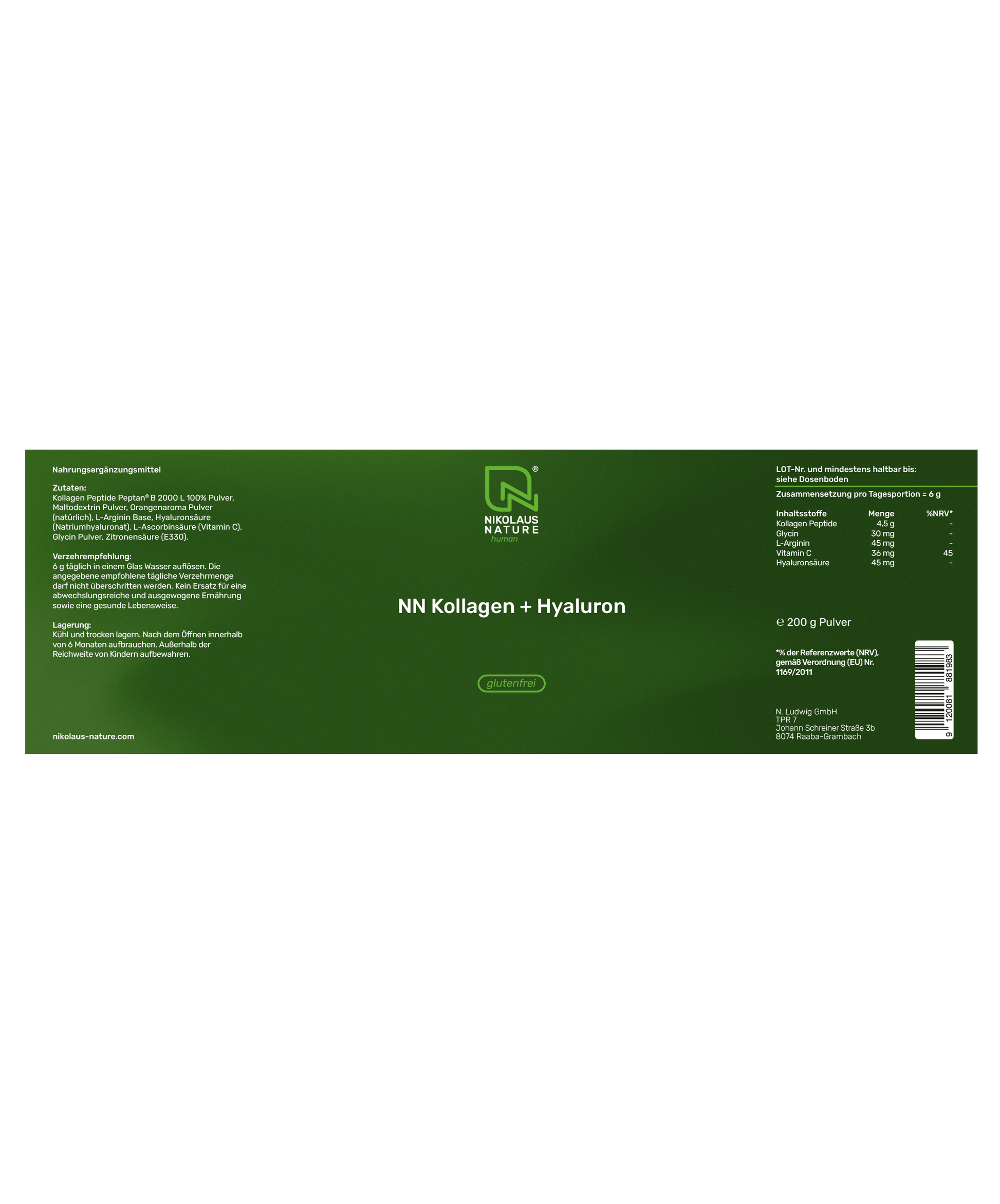 Glänzende Haut, geschmeidiges Bindegewebe und ein frischer Teint – all das beginnt unter der Oberfläche. Mit NN Kollagen + Hyaluron versorgst du deinen Körper täglich mit sorgfältig abgestimmten Nährstoffen, die deine natürliche Schönheit von innen unterstützen. Die Kombination aus hochwertigen Kollagenpeptiden, Hyaluronsäure, Vitamin C und Aminosäuren ist einfach anzuwenden, angenehm im Geschmack und ein fester Bestandteil deiner täglichen Pflege von innen heraus.